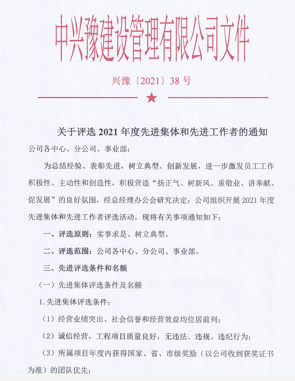 關于評選2021年度先進集體和先進工作者的通知