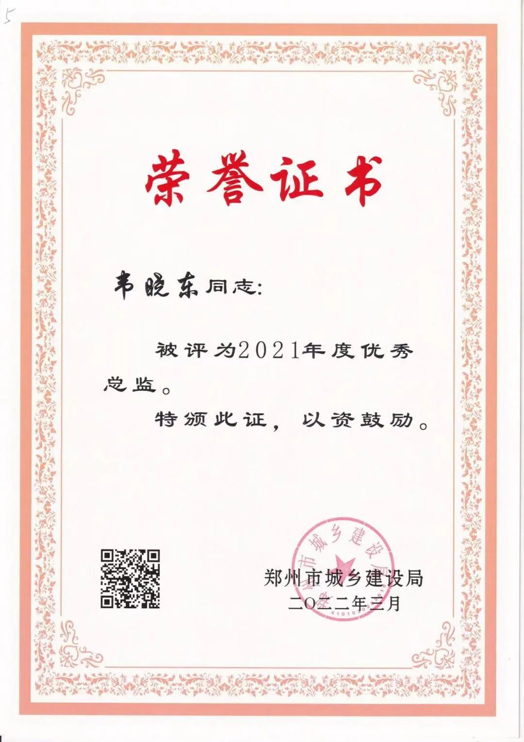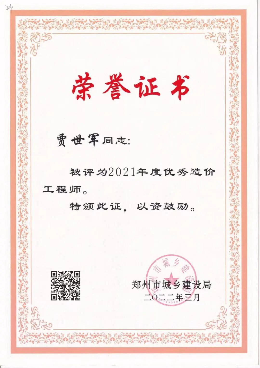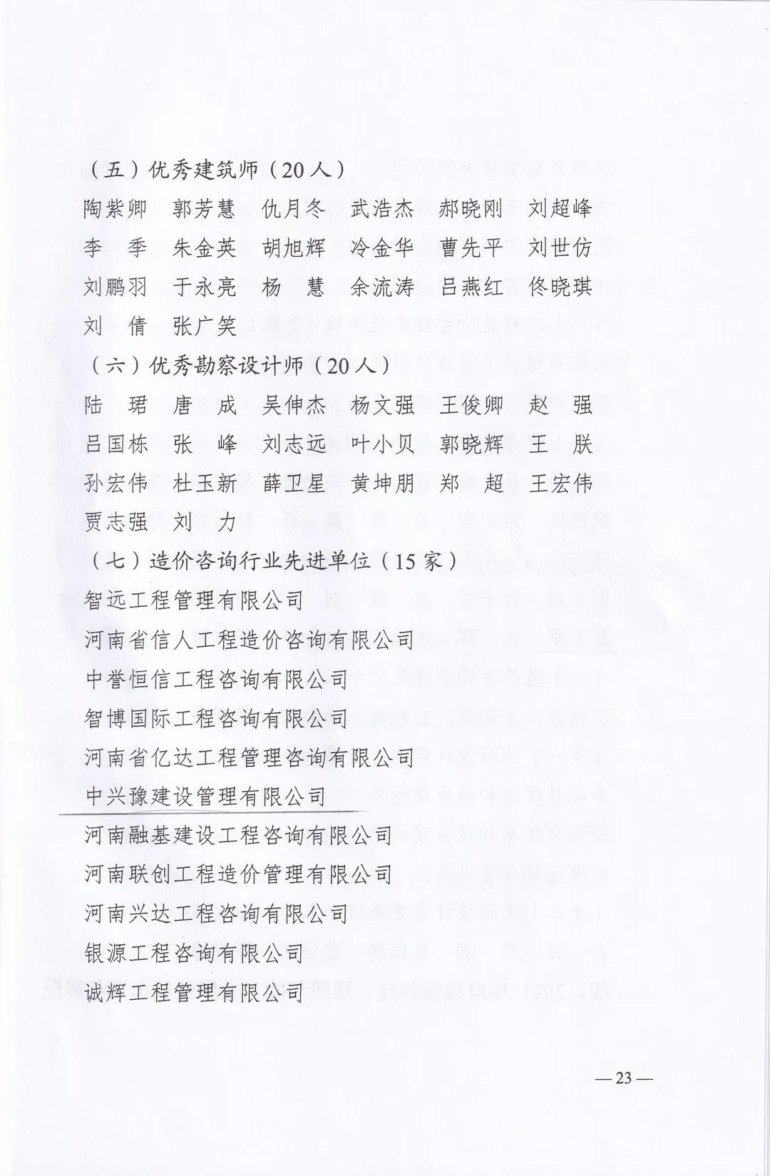 近日,鄭州市城鄉(xiāng)建設(shè)局發(fā)布了《關(guān)于表彰2021年度建設(shè)系統(tǒng)先進(jìn)單位先進(jìn)企業(yè)和先進(jìn)個人的通報》,中興豫建設(shè)管理有限公司被評為“2021年度招標(biāo)代理先進(jìn)單位”、“2021年度造價咨詢行業(yè)先進(jìn)單位”,我公司員工韋曉東被評為“優(yōu)秀總監(jiān)”、劉東生被評為“優(yōu)秀注冊監(jiān)理工程師”、賈世軍被評為“優(yōu)秀造價工程師”。