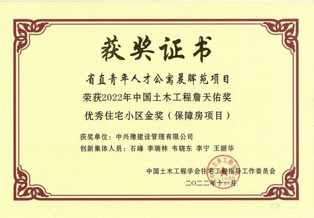 日前,2022年度中國(guó)土木工程詹天佑獎(jiǎng)優(yōu)秀住宅小區(qū)金獎(jiǎng)?wù)浇視?,?jīng)過(guò)推薦申報(bào)、資格審查、專業(yè)組初評(píng)、終審會(huì)議評(píng)審、詹天佑大獎(jiǎng)指導(dǎo)委員會(huì)審核以及公示等評(píng)選程序,共有38項(xiàng)土木工程領(lǐng)域的杰出代表性工程獲獎(jiǎng)。中興豫建設(shè)管理有限公司監(jiān)理的河南省省直青年人才公寓晨暉苑項(xiàng)目榜上有名。