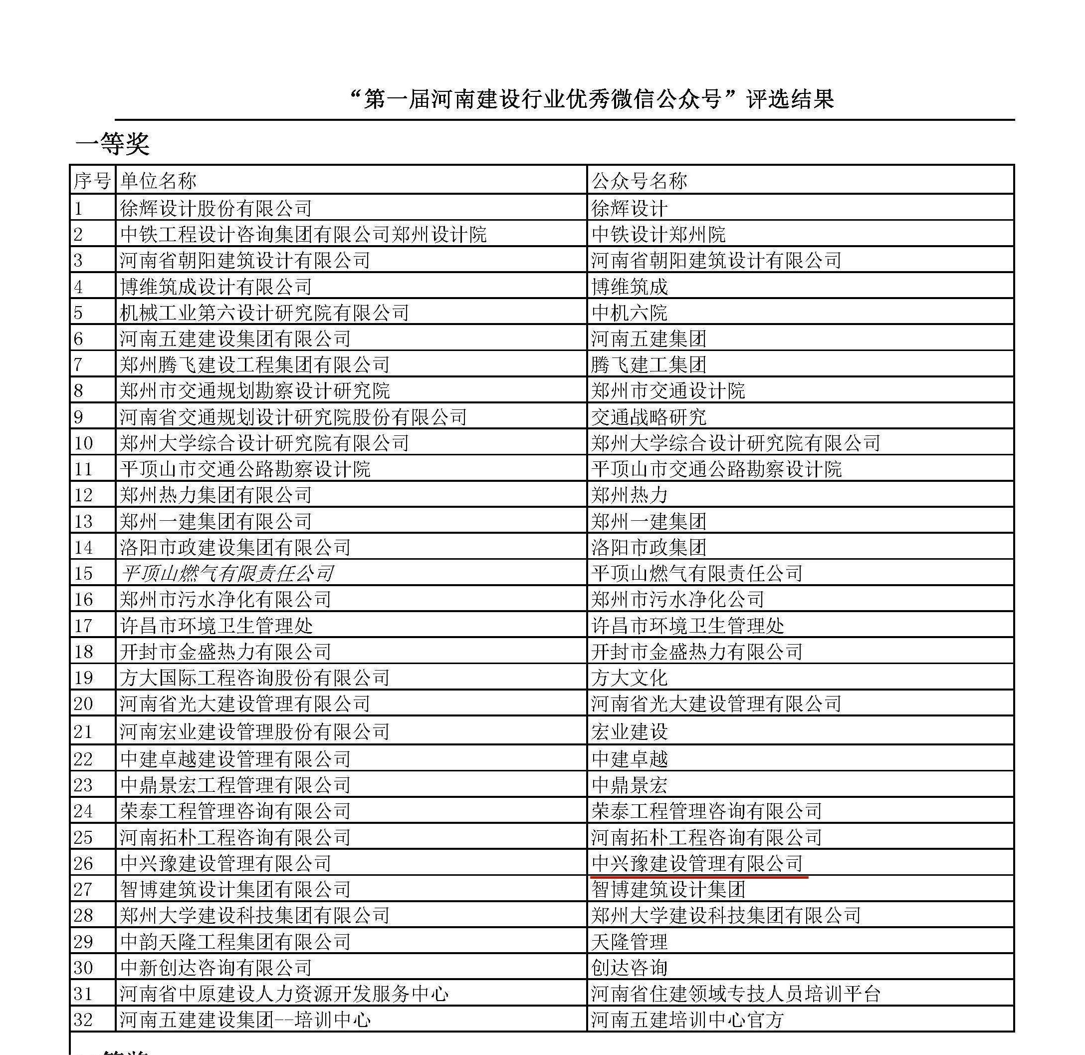 近日,由河南省工程勘察設(shè)計(jì)行業(yè)協(xié)會(huì)、河南省建設(shè)監(jiān)理協(xié)會(huì)、河南省建設(shè)教育協(xié)會(huì)、河南省市政公用業(yè)協(xié)會(huì)聯(lián)合舉辦的“第一屆河南建設(shè)行業(yè)優(yōu)秀微信公眾號(hào)”評(píng)選工作落下帷幕,經(jīng)評(píng)審委員會(huì)評(píng)審,中興豫建設(shè)管理有限公司榮獲一等獎(jiǎng)。