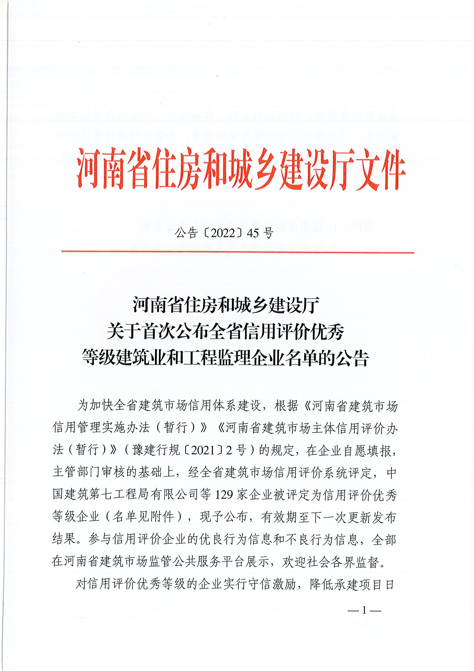 9月2日,河南省住房和城鄉(xiāng)建設(shè)廳首次公布全省信用評價優(yōu)秀等級建筑業(yè)和工程監(jiān)理企業(yè)名單,在主管部門審核的基礎(chǔ)上,經(jīng)全省建筑市場信用評價系統(tǒng)評定,中興豫建設(shè)管理有限公司榮登榜單!