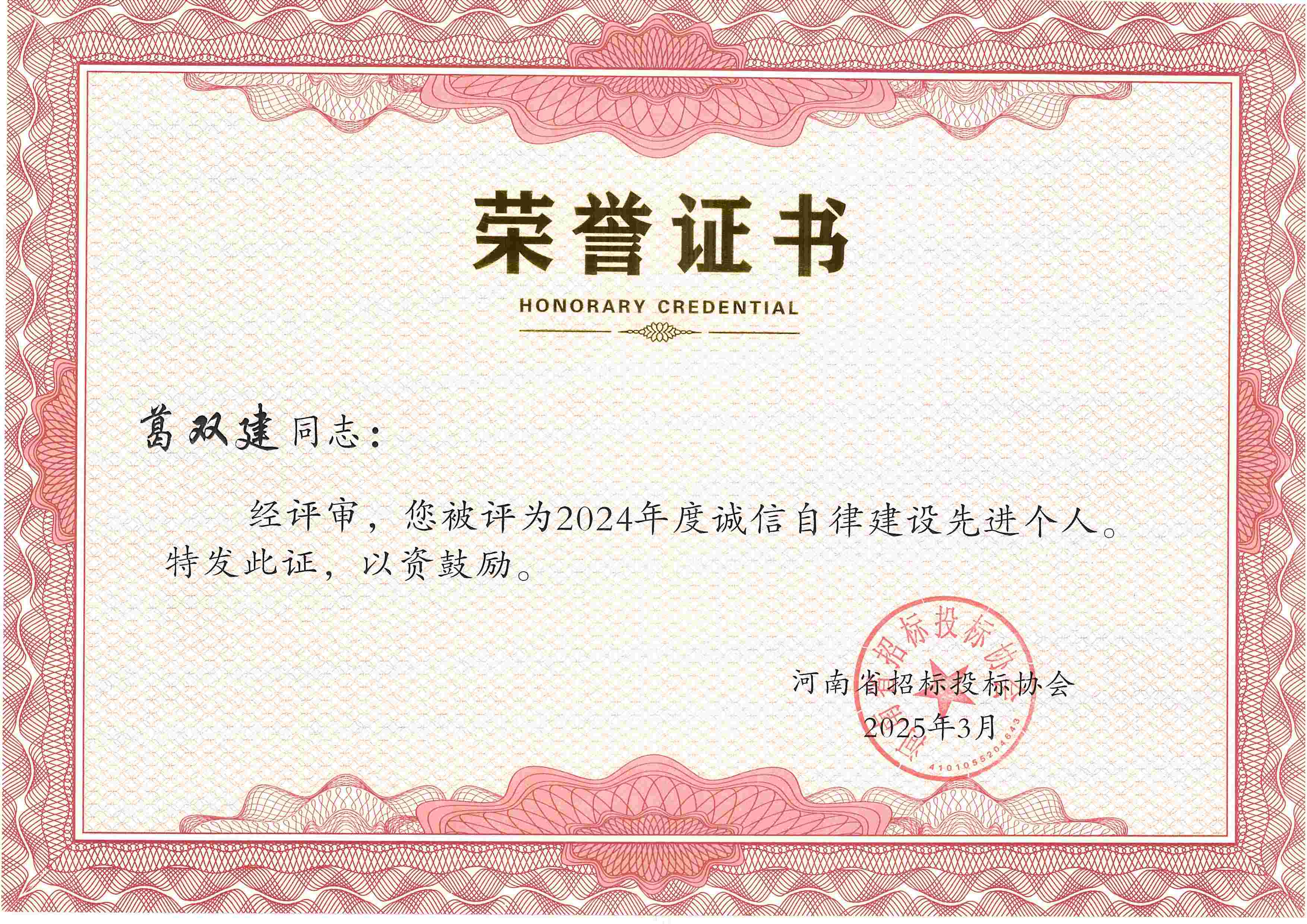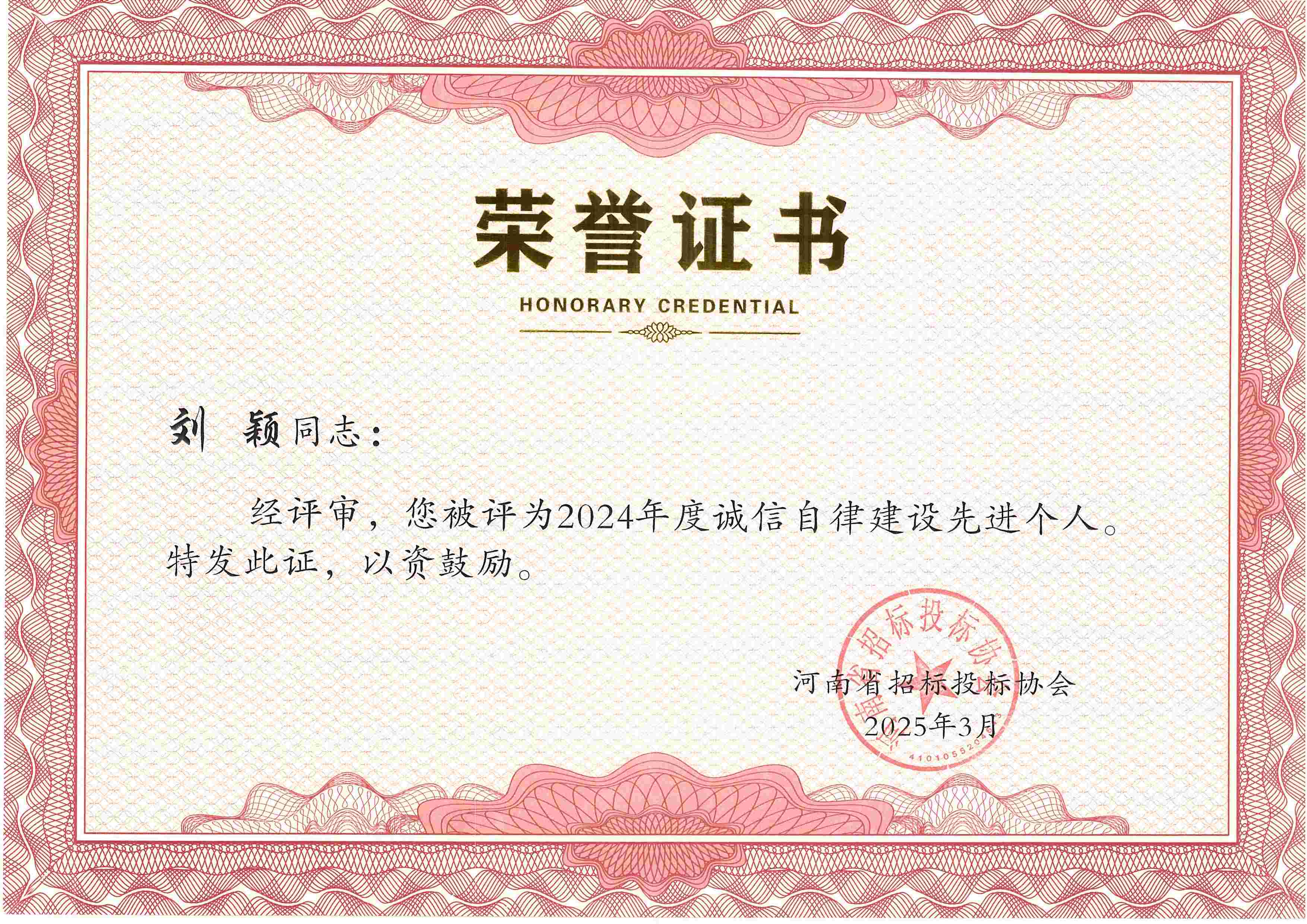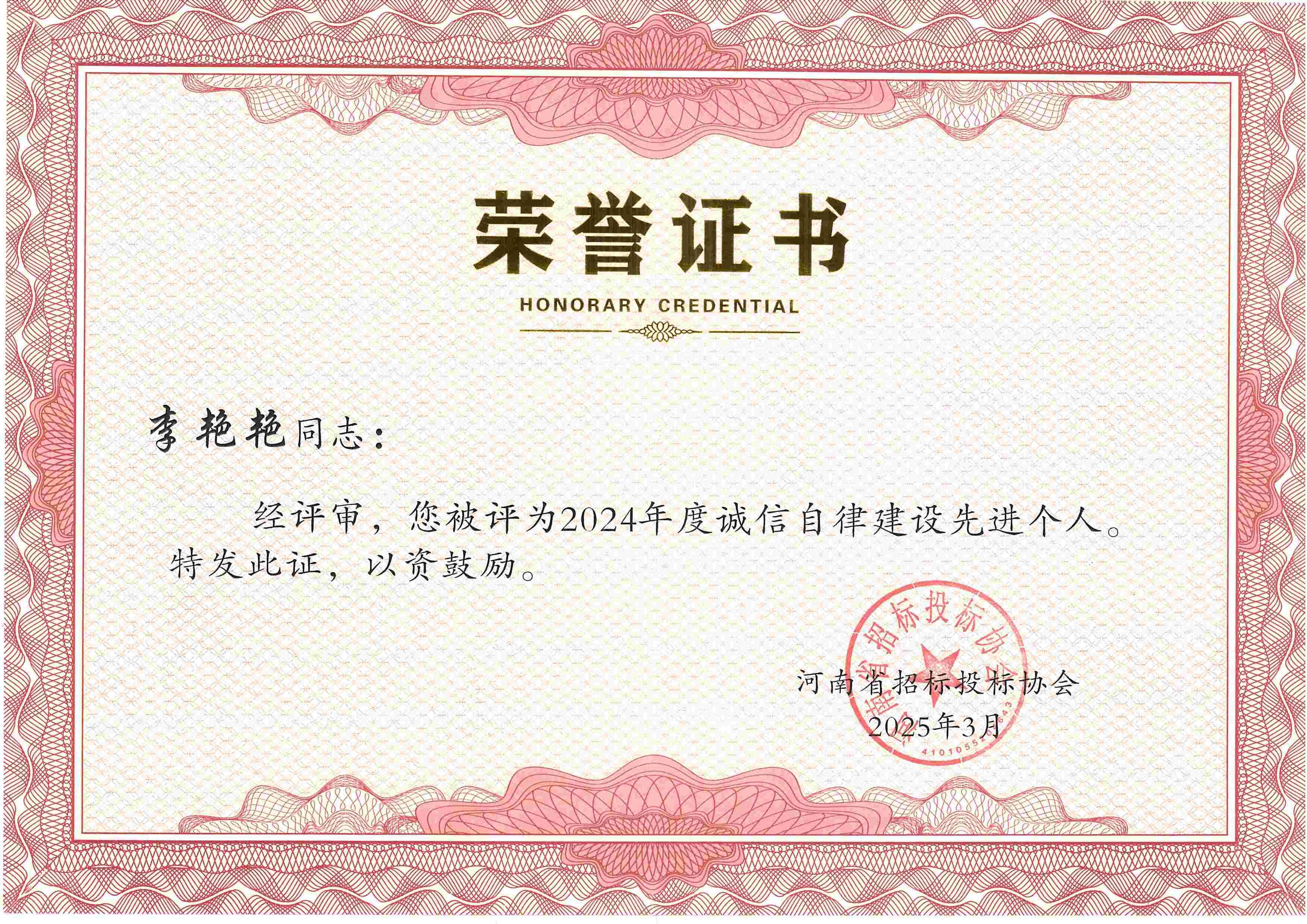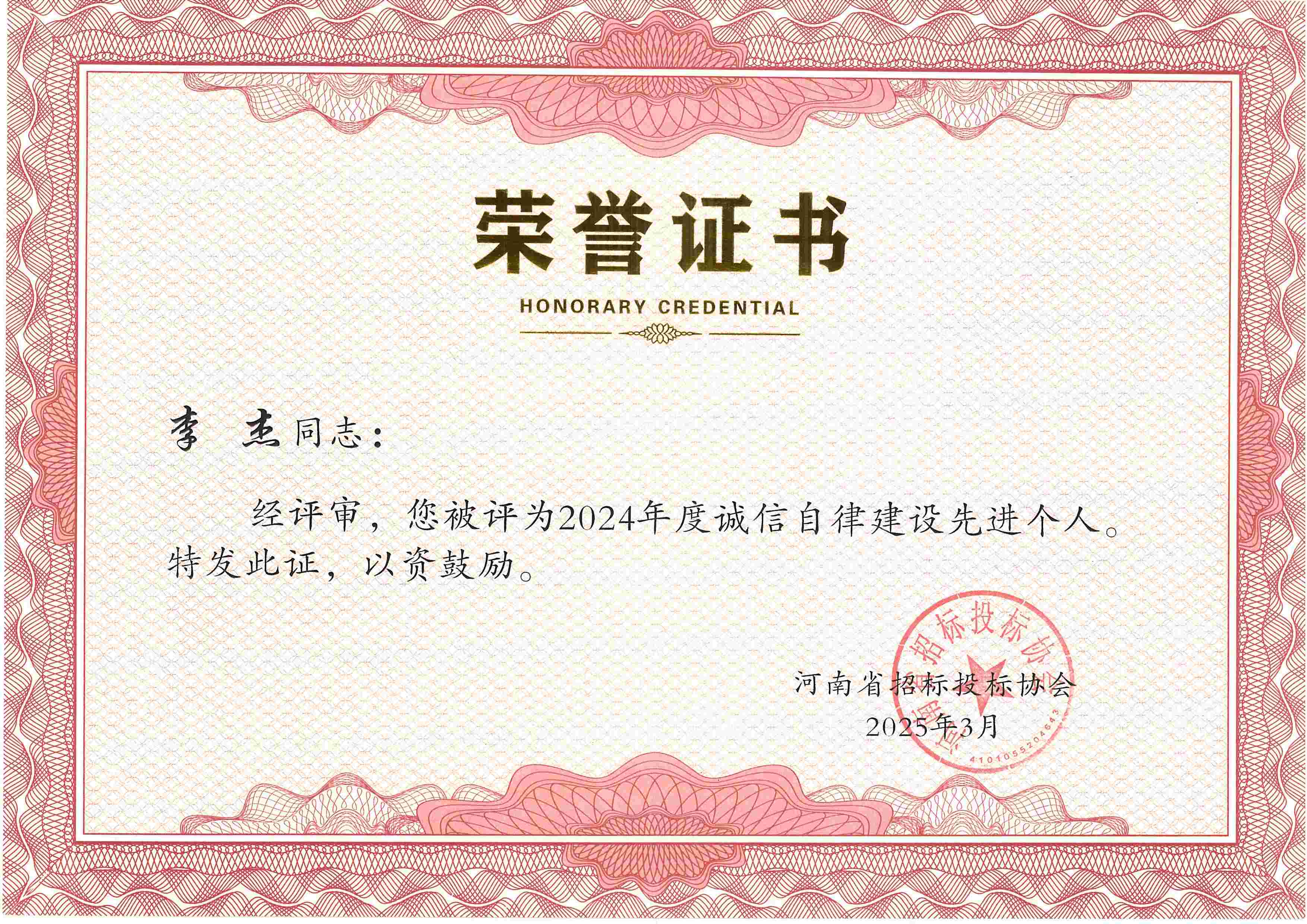 近日,河南省招標投標協(xié)會發(fā)布關(guān)于表彰2024年度誠信自律建設(shè)先進單位、先進個人的決定。其中,中興豫建設(shè)管理有限公司榮幸入選“2024年度誠信自律建設(shè)先進單位”。