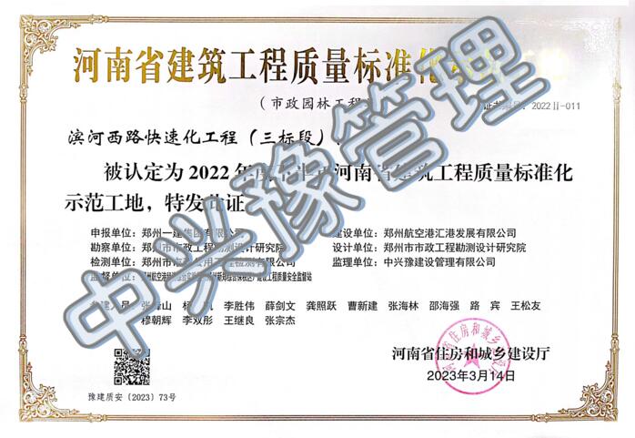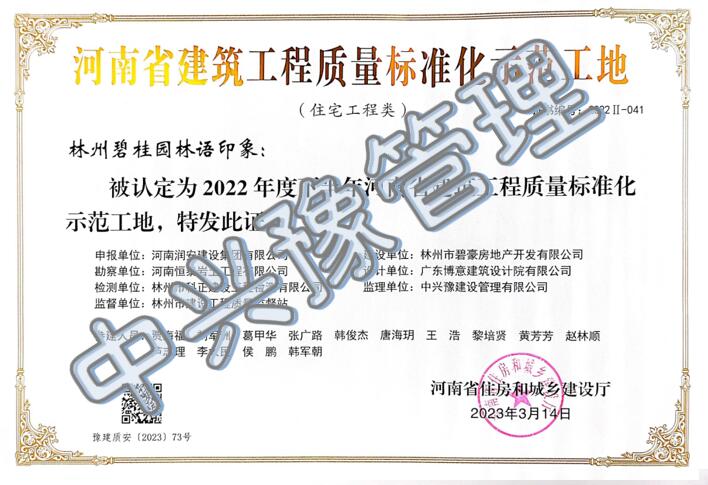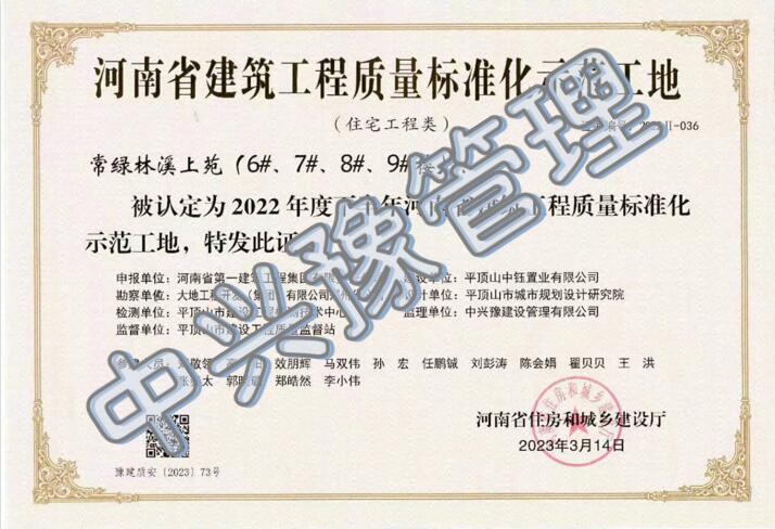 近日,我公司監(jiān)理的常綠林溪上苑(6#樓、7#樓、8#樓、9#樓)項(xiàng)目榮獲“2022年度下半年河南省建筑工程質(zhì)量標(biāo)準(zhǔn)化示范工地”及“河南省優(yōu)質(zhì)結(jié)構(gòu)工程”榮譽(yù)稱(chēng)號(hào);林州碧桂園林語(yǔ)印象項(xiàng)目榮獲“2022年度下半年河南省建筑工程質(zhì)量標(biāo)準(zhǔn)化示范工地”榮譽(yù)稱(chēng)號(hào);濱河西路快速化工程(三標(biāo)段)項(xiàng)目榮獲“2022年度下半年河南省建筑工程質(zhì)量標(biāo)準(zhǔn)化示范工地”榮譽(yù)稱(chēng)號(hào)。