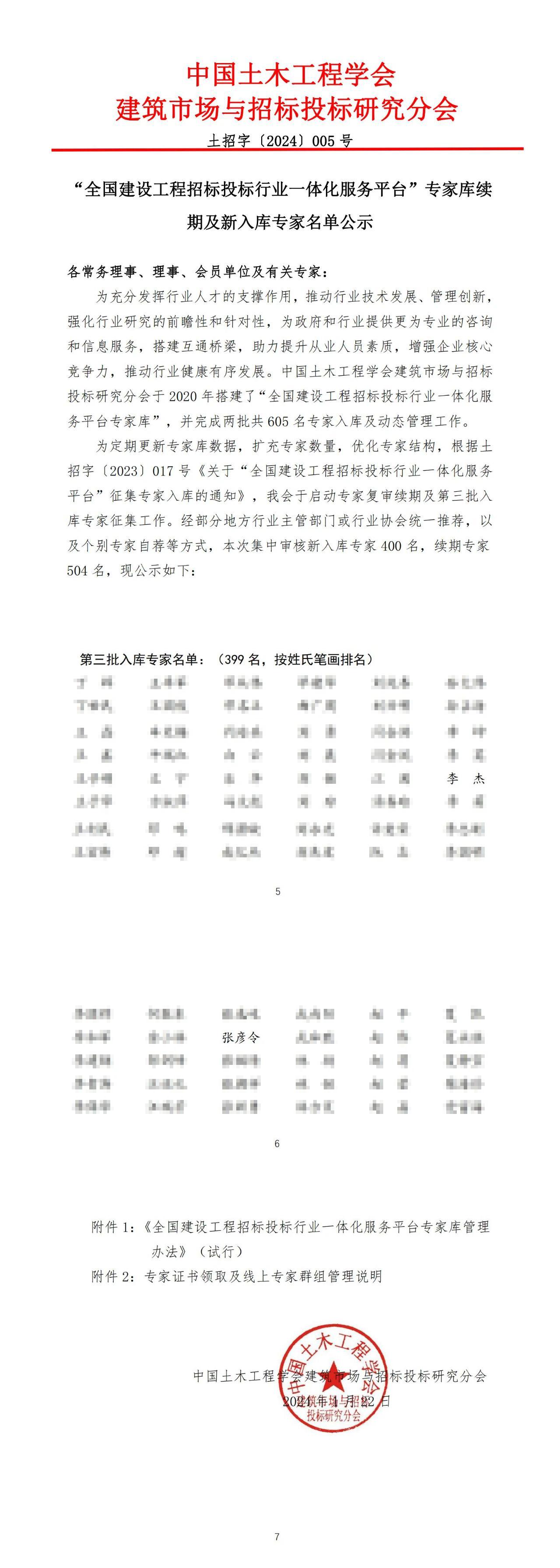 近日,中國土木工程學(xué)會建筑市場與招標(biāo)投標(biāo)研究分會公布了“全國建設(shè)工程招標(biāo)投標(biāo)行業(yè)一體化服務(wù)平臺”專家?guī)炖m(xù)期及新入庫專家名單的通知,我公司李杰、張彥令2名專家順利入圍專家?guī)臁?/span>