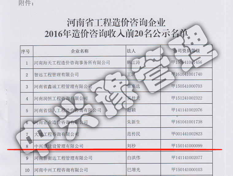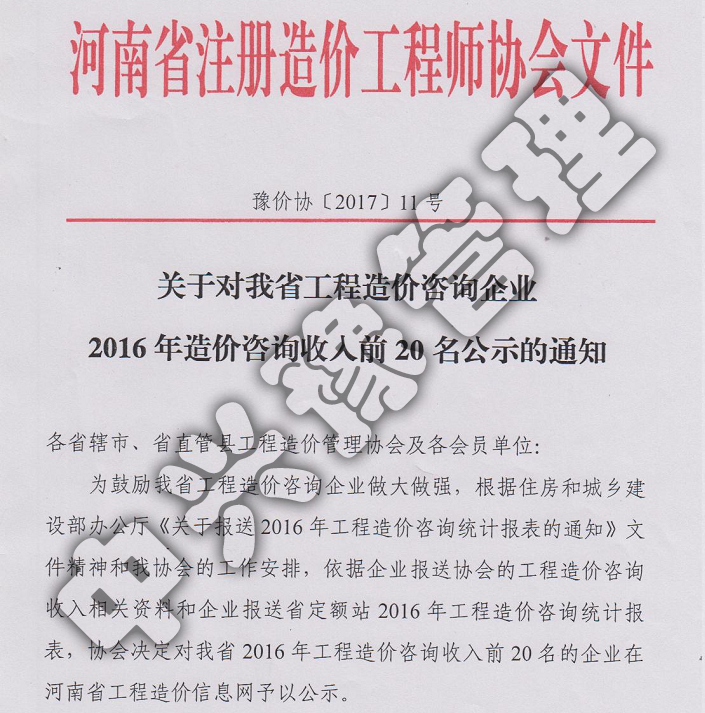 河南省工程造價咨詢企業(yè)收入20強-公司榮譽