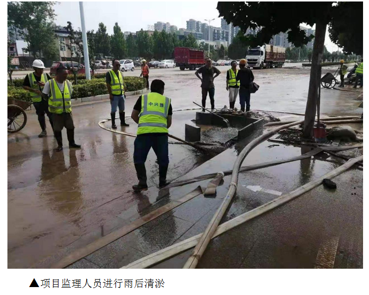 ▲項目監(jiān)理人員進行雨后清淤